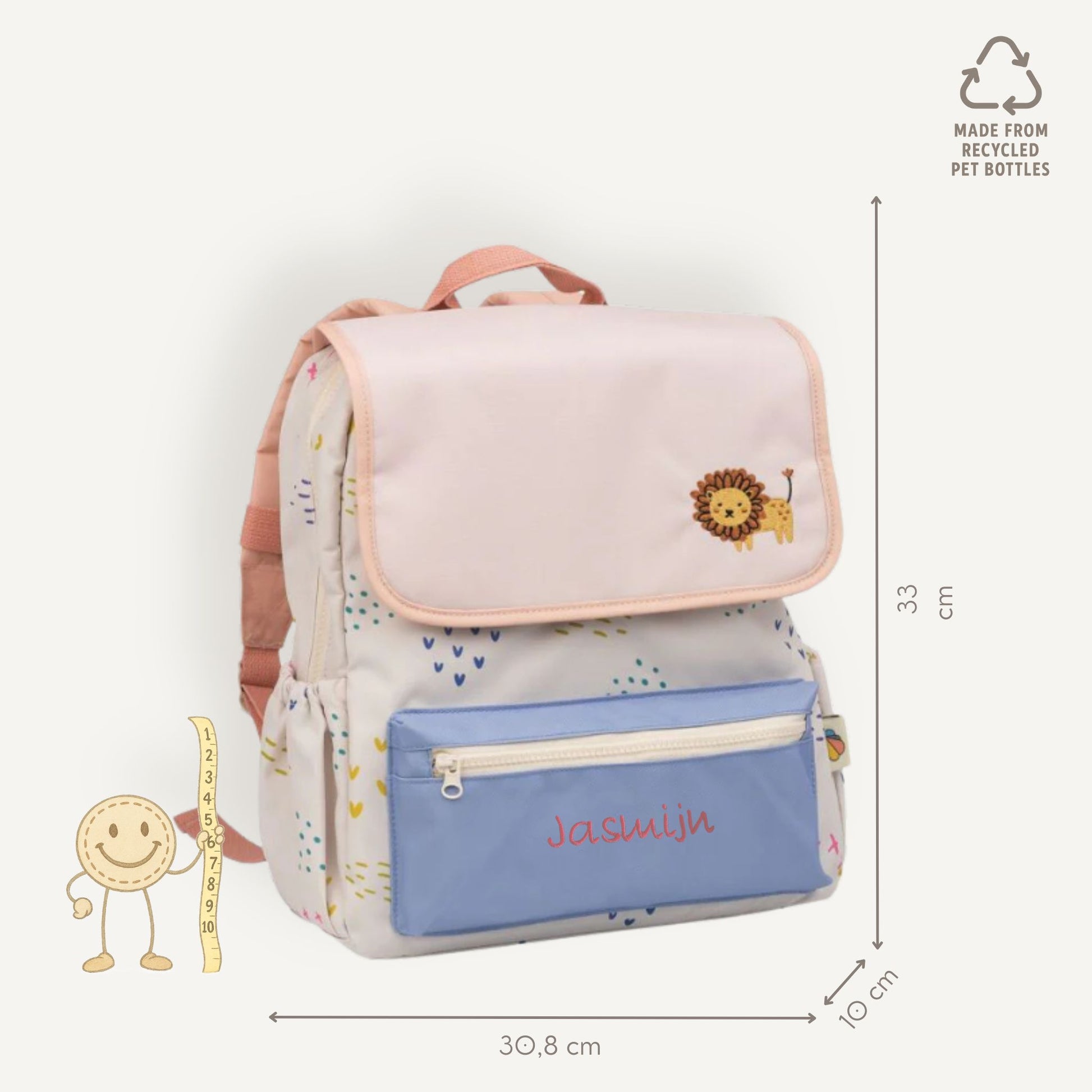 Wil je de rugzak écht persoonlijk maken? Voor een kleine meerprijs van € 12,95 borduren we een naam op de tas.
