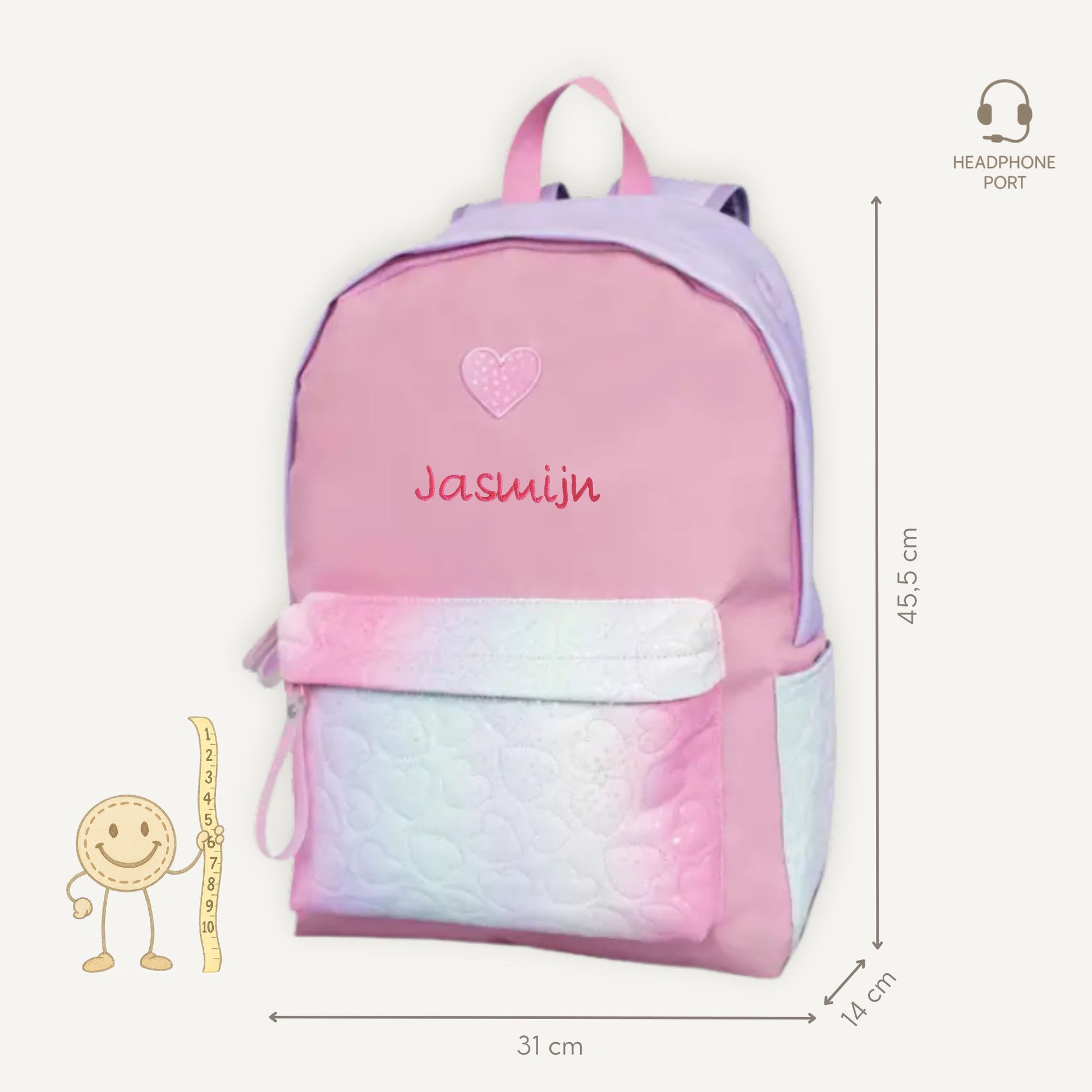 Wil je de rugzak écht persoonlijk maken? Voor een kleine meerprijs van € 12,95 borduren we een naam op de tas.